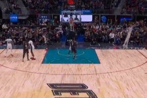 让你不信邪!文班亚马三帽坎宁安!这次拉杆上篮依然被扇飞!