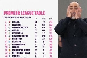上赛季以来英超积分排名: