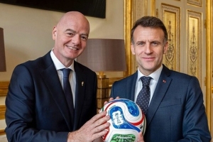 当地时间本周五,马克龙总统接见了国际足联主席因凡蒂诺以及法国足球名宿德约卡夫。在距离2026年世界杯还有三个月时,三人谈论了多个话题。因凡蒂诺主席还参观了位于巴黎协和广场的国际足联办事处,并看望了办事处的工作人员们。