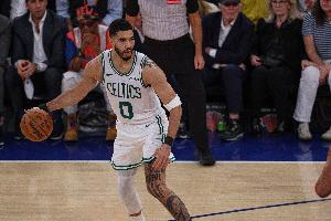 本场比赛,塔图姆出战27分钟,前6投全丢,但此后顶级调整连进四球连得9分,全场他16中6拿到15分12篮板7助攻1抢断,正负值+20!