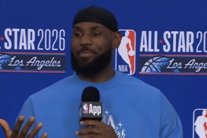 体育资讯2月16日讯 今日,湖人球星詹姆斯举行了全明星新闻发布会。